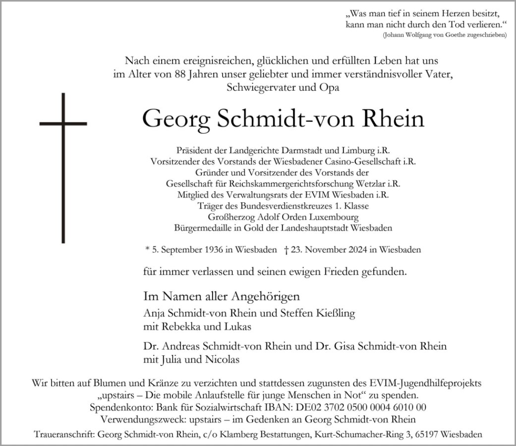 mit großer Trauer denke ich an Ihren Vater, Großvater und Schwiegervater. Mit ihm ist ein wunderbarer Gesprächspartner gegangen, der stets nur so von Ideen sprühte und dessen Schaffenskraft bis zuletzt so unermüdlich war. Nur zu gerne erinnere ich mich an die konstruktive Zusammenarbeit an der Forschungsstelle der Gesellschaft für Reichskammergerichtsforschung in Wetzlar, deren Mitbegründer und langjähriger Vorsitzender er war.
